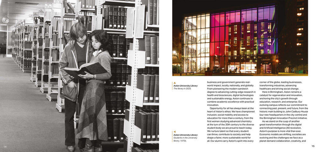 The book combines rare archival material with specially commissioned contemporary photography, and captures both Aston’s heritage and its forward-looking identity. The historic archive images sit alongside new photography by Birmingham photographer Jonathan Berg, offering a visual record of today's campus, its people and its place within the city.